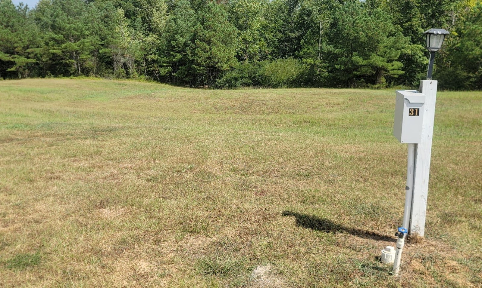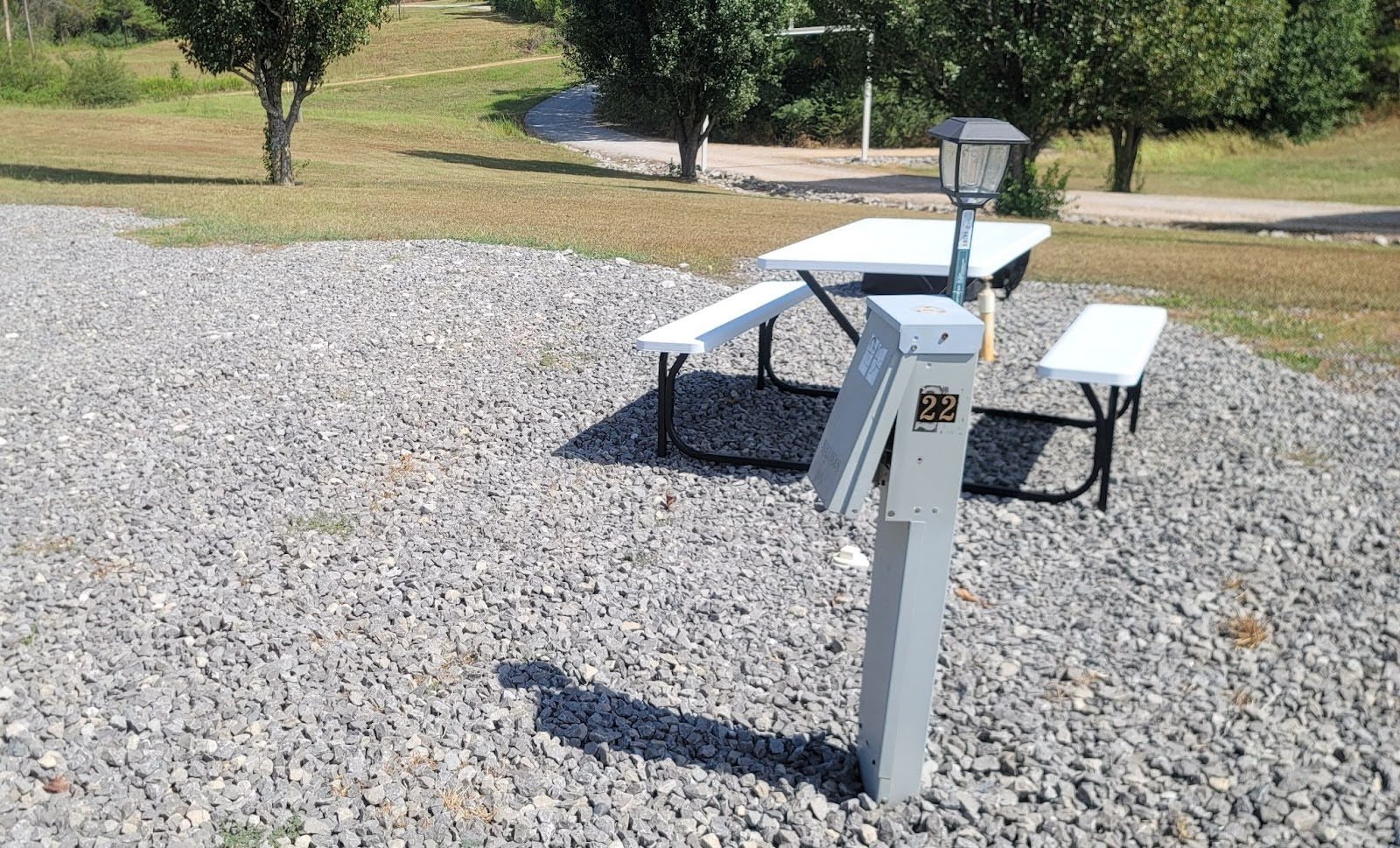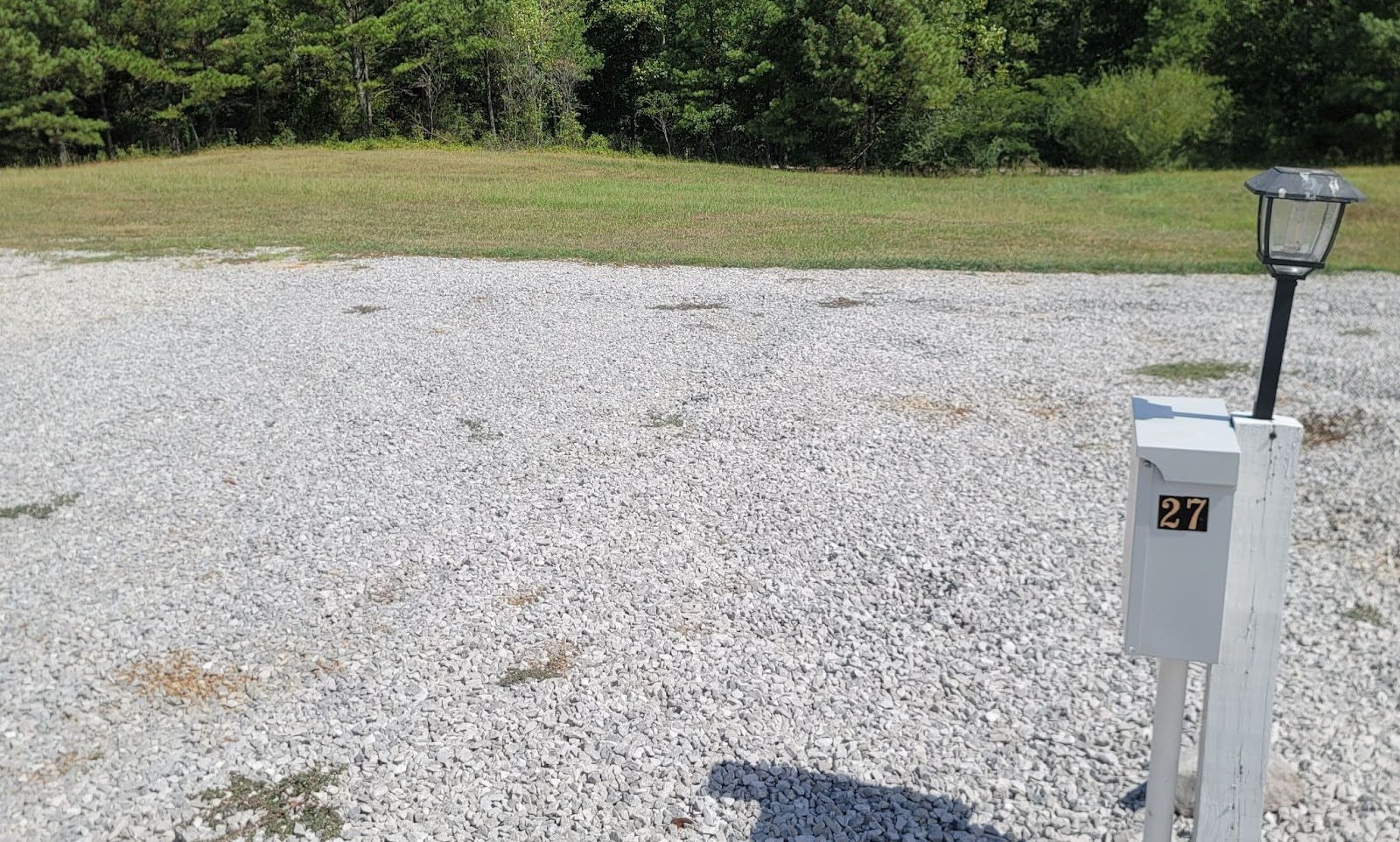 RV Site 31 features a 25×30 gravel pad with an 85% level slope, located 330 feet from the bathhouse. This site includes full hookups (30/50-amp, water, sewer), a picnic table, and a fire pit for outdoor relaxation. The general store and park entrance are conveniently nearby. Hiking trails, streams, and caves are on the lower side of the park. WiFi is available throughout the campground.